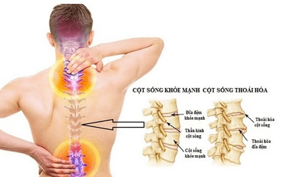 Đĩa đệm là “cái đệm” nằm giữa các đốt sống, có tác dụng giảm sốc, hấp thụ lực và giúp cột sống linh hoạt. Khi thoái hóa, đĩa đệm mất nước, giảm độ đàn hồi, dễ nứt rách và có thể lồi ra ngoài (thoát vị). Bệnh hay gặp ở cột sống cổ và cột sống thắt lưng.
